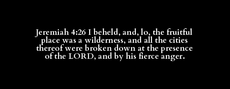 Jeremiah 4:26 I beheld, and, lo, the fruitful place was a wilderness, and all the cities thereof were broken down at the presence of the LORD, and by his fierce anger.