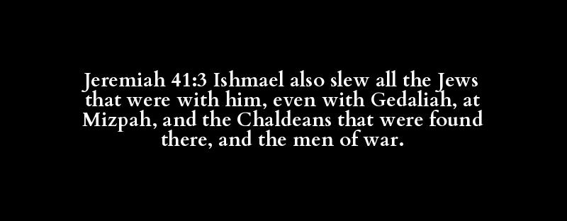 Jeremiah 41:3 Ishmael also slew all the Jews that were with him, even with Gedaliah, at Mizpah, and the Chaldeans that were found there, and the men of war.