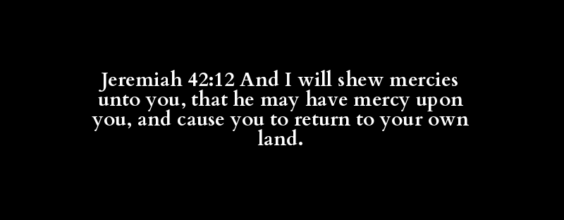 Jeremiah 42:12 And I will shew mercies unto you, that he may have mercy upon you, and cause you to return to your own land.