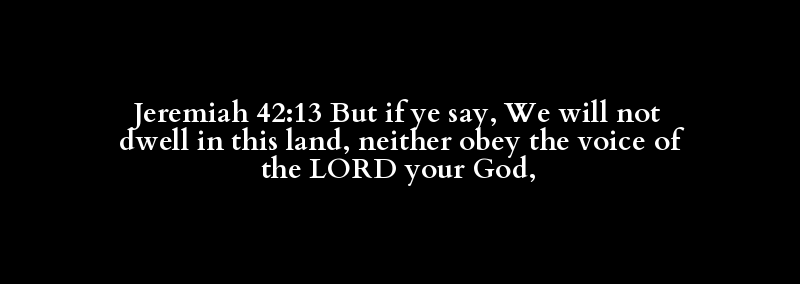 Jeremiah 42:13 But if ye say, We will not dwell in this land, neither obey the voice of the LORD your God,