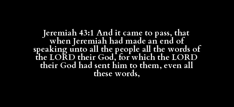 Jeremiah 43:1 And it came to pass, that when Jeremiah had made an end of speaking unto all the people all the words of the LORD their God, for which the LORD their God had sent him to them, even all these words,