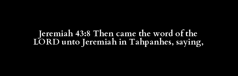Jeremiah 43:8 Then came the word of the LORD unto Jeremiah in Tahpanhes, saying,