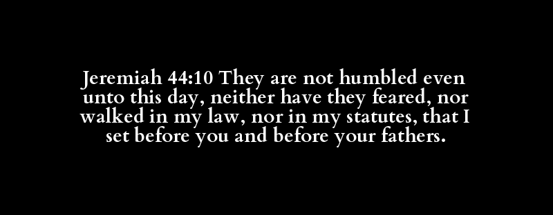 Jeremiah 44:10 They are not humbled even unto this day, neither have they feared, nor walked in my law, nor in my statutes, that I set before you and before your fathers.