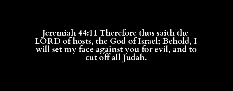 Jeremiah 44:11 Therefore thus saith the LORD of hosts, the God of Israel; Behold, I will set my face against you for evil, and to cut off all Judah.