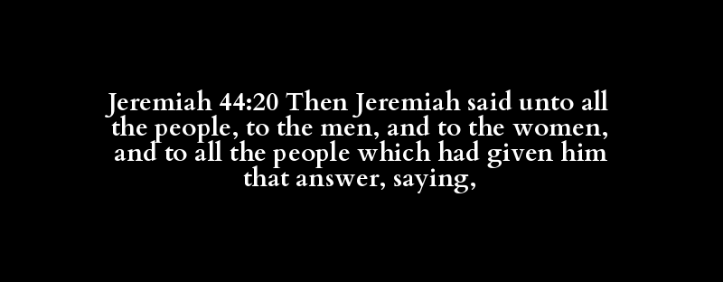 Jeremiah 44:20 Then Jeremiah said unto all the people, to the men, and to the women, and to all the people which had given him that answer, saying,