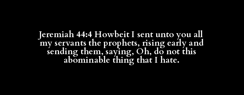 Jeremiah 44:4 Howbeit I sent unto you all my servants the prophets, rising early and sending them, saying, Oh, do not this abominable thing that I hate.