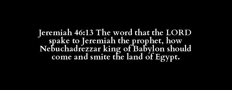 Jeremiah 46:13 The word that the LORD spake to Jeremiah the prophet, how Nebuchadrezzar king of Babylon should come and smite the land of Egypt.