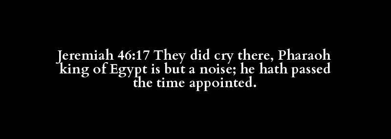 Jeremiah 46:17 They did cry there, Pharaoh king of Egypt is but a noise; he hath passed the time appointed.