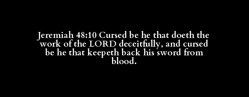 Jeremiah 48:10 Cursed be he that doeth the work of the LORD deceitfully, and cursed be he that keepeth back his sword from blood.