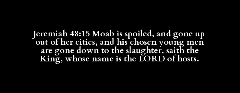 Jeremiah 48:15 Moab is spoiled, and gone up out of her cities, and his chosen young men are gone down to the slaughter, saith the King, whose name is the LORD of hosts.