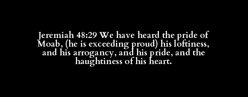 Jeremiah 48:29 We have heard the pride of Moab, (he is exceeding proud) his loftiness, and his arrogancy, and his pride, and the haughtiness of his heart.