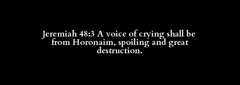 Jeremiah 48:3 A voice of crying shall be from Horonaim, spoiling and great destruction.