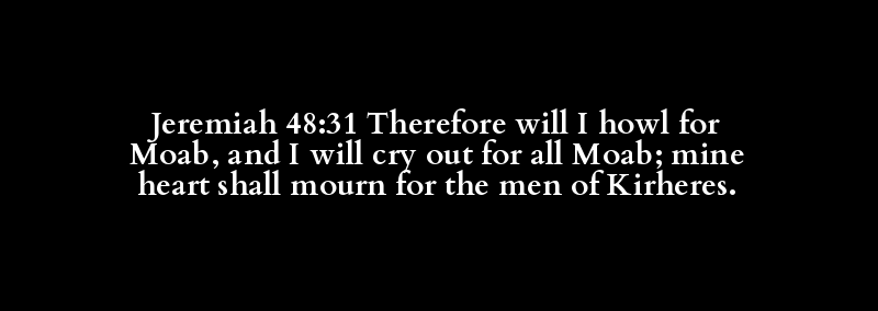 Jeremiah 48:31 Therefore will I howl for Moab, and I will cry out for all Moab; mine heart shall mourn for the men of Kirheres.