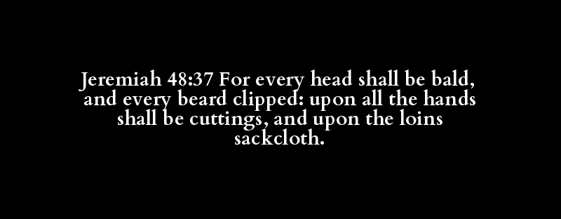 Jeremiah 48:37 For every head shall be bald, and every beard clipped: upon all the hands shall be cuttings, and upon the loins sackcloth.
