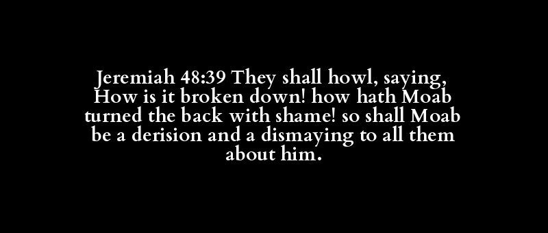Jeremiah 48:39 They shall howl, saying, How is it broken down! how hath Moab turned the back with shame! so shall Moab be a derision and a dismaying to all them about him.