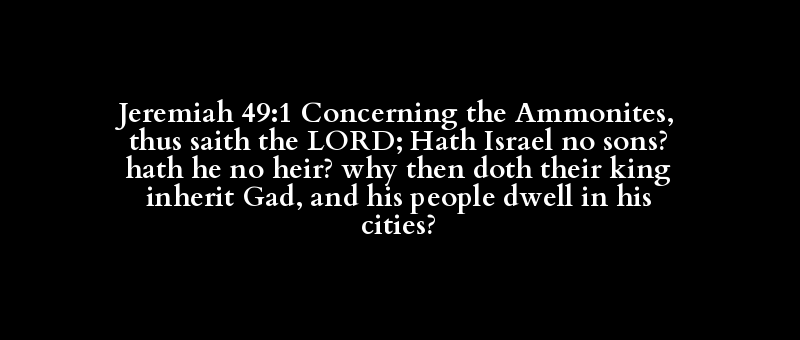 Jeremiah 49:1 Concerning the Ammonites, thus saith the LORD; Hath Israel no sons? hath he no heir? why then doth their king inherit Gad, and his people dwell in his cities?