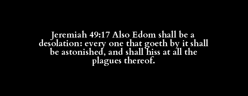 Jeremiah 49:17 Also Edom shall be a desolation: every one that goeth by it shall be astonished, and shall hiss at all the plagues thereof.