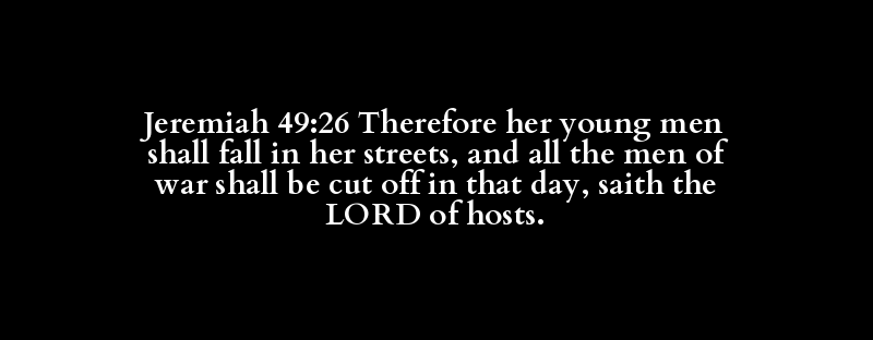 Jeremiah 49:26 Therefore her young men shall fall in her streets, and all the men of war shall be cut off in that day, saith the LORD of hosts.