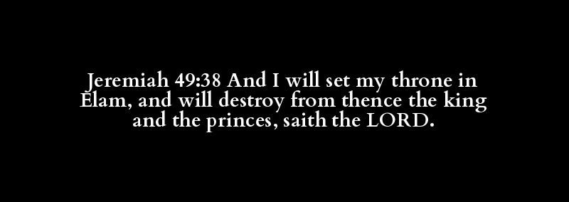 Jeremiah 49:38 And I will set my throne in Elam, and will destroy from thence the king and the princes, saith the LORD.