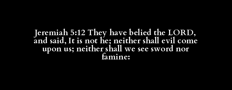 Jeremiah 5:12 They have belied the LORD, and said, It is not he; neither shall evil come upon us; neither shall we see sword nor famine: