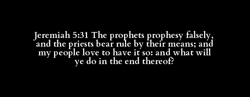 Jeremiah 5:31 The prophets prophesy falsely, and the priests bear rule by their means; and my people love to have it so: and what will ye do in the end thereof?