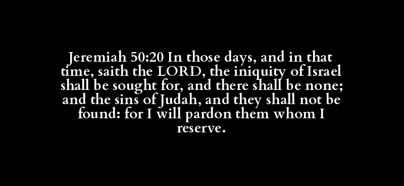 Jeremiah 50:20 In those days, and in that time, saith the LORD, the iniquity of Israel shall be sought for, and there shall be none; and the sins of Judah, and they shall not be found: for I will pardon them whom I reserve.