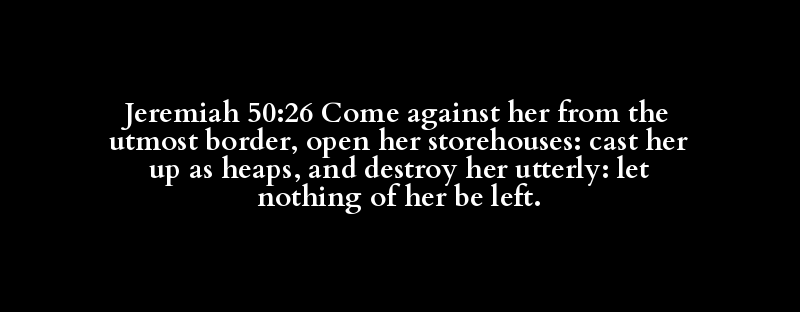 Jeremiah 50:26 Come against her from the utmost border, open her storehouses: cast her up as heaps, and destroy her utterly: let nothing of her be left.