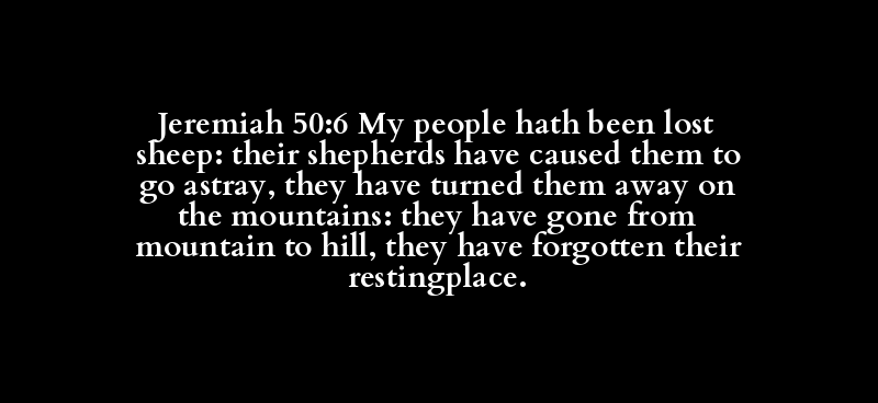 Jeremiah 50:6 My people hath been lost sheep: their shepherds have caused them to go astray, they have turned them away on the mountains: they have gone from mountain to hill, they have forgotten their restingplace.
