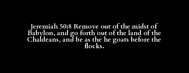 Jeremiah 50:8 Remove out of the midst of Babylon, and go forth out of the land of the Chaldeans, and be as the he goats before the flocks.