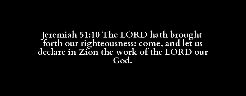 Jeremiah 51:10 The LORD hath brought forth our righteousness: come, and let us declare in Zion the work of the LORD our God.