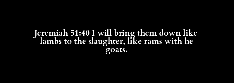 Jeremiah 51:40 I will bring them down like lambs to the slaughter, like rams with he goats.