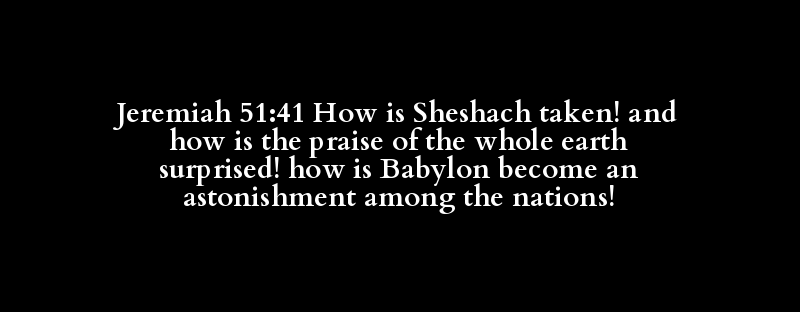Jeremiah 51:41 How is Sheshach taken! and how is the praise of the whole earth surprised! how is Babylon become an astonishment among the nations!