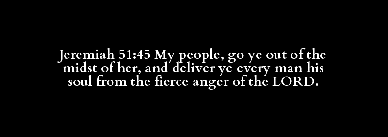 Jeremiah 51:45 My people, go ye out of the midst of her, and deliver ye every man his soul from the fierce anger of the LORD.