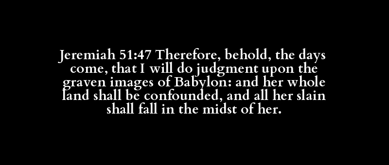 Jeremiah 51:47 Therefore, behold, the days come, that I will do judgment upon the graven images of Babylon: and her whole land shall be confounded, and all her slain shall fall in the midst of her.