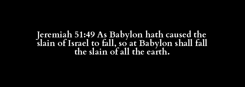 Jeremiah 51:49 As Babylon hath caused the slain of Israel to fall, so at Babylon shall fall the slain of all the earth.