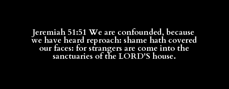 Jeremiah 51:51 We are confounded, because we have heard reproach: shame hath covered our faces: for strangers are come into the sanctuaries of the LORD'S house.