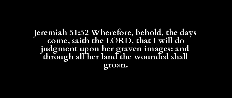 Jeremiah 51:52 Wherefore, behold, the days come, saith the LORD, that I will do judgment upon her graven images: and through all her land the wounded shall groan.