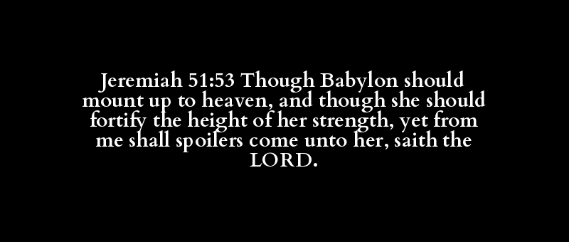 Jeremiah 51:53 Though Babylon should mount up to heaven, and though she should fortify the height of her strength, yet from me shall spoilers come unto her, saith the LORD.