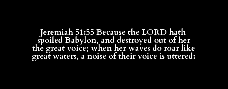 Jeremiah 51:55 Because the LORD hath spoiled Babylon, and destroyed out of her the great voice; when her waves do roar like great waters, a noise of their voice is uttered: