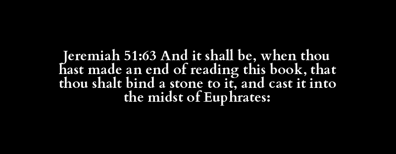 Jeremiah 51:63 And it shall be, when thou hast made an end of reading this book, that thou shalt bind a stone to it, and cast it into the midst of Euphrates: