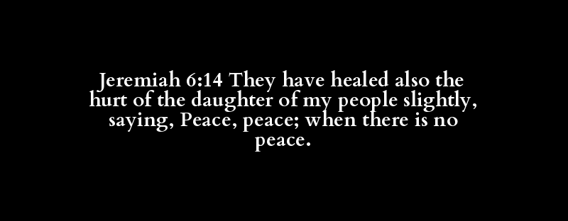 Jeremiah 6:14 They have healed also the hurt of the daughter of my people slightly, saying, Peace, peace; when there is no peace.