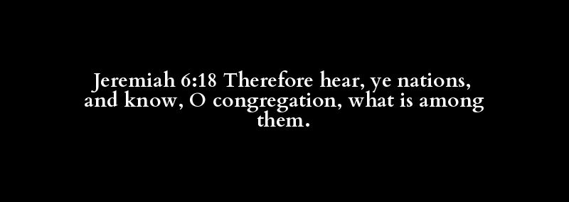Jeremiah 6:18 Therefore hear, ye nations, and know, O congregation, what is among them.
