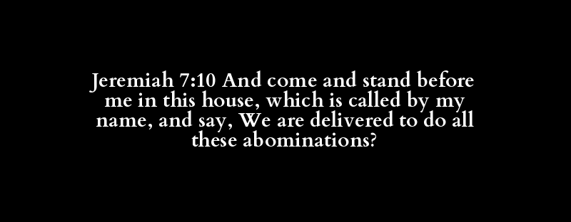 Jeremiah 7:10 And come and stand before me in this house, which is called by my name, and say, We are delivered to do all these abominations?