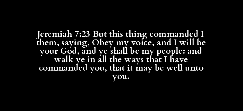 Jeremiah 7:23 But this thing commanded I them, saying, Obey my voice, and I will be your God, and ye shall be my people: and walk ye in all the ways that I have commanded you, that it may be well unto you.