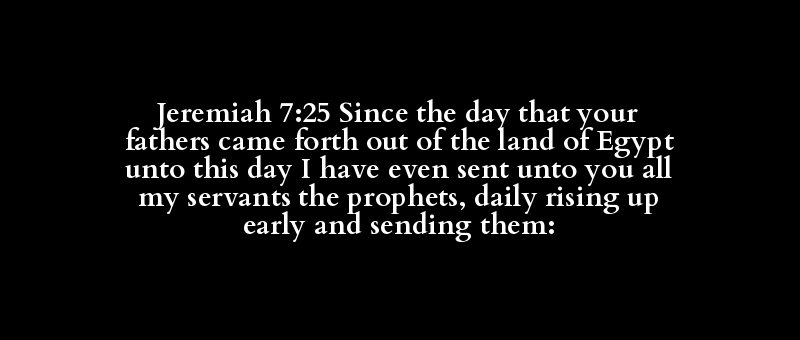 Jeremiah 7:25 Since the day that your fathers came forth out of the land of Egypt unto this day I have even sent unto you all my servants the prophets, daily rising up early and sending them: