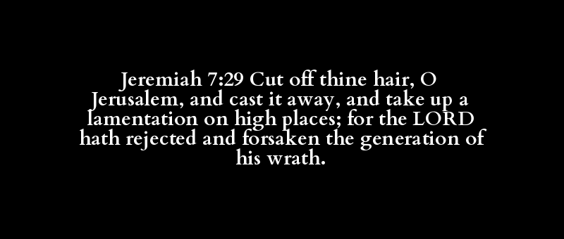Jeremiah 7:29 Cut off thine hair, O Jerusalem, and cast it away, and take up a lamentation on high places; for the LORD hath rejected and forsaken the generation of his wrath.