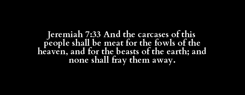 Jeremiah 7:33 And the carcases of this people shall be meat for the fowls of the heaven, and for the beasts of the earth; and none shall fray them away.