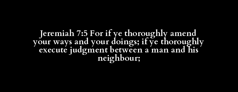 Jeremiah 7:5 For if ye thoroughly amend your ways and your doings; if ye thoroughly execute judgment between a man and his neighbour;