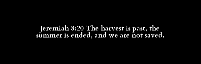 Jeremiah 8:20 The harvest is past, the summer is ended, and we are not saved.