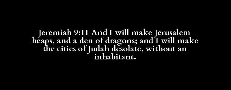 Jeremiah 9:11 And I will make Jerusalem heaps, and a den of dragons; and I will make the cities of Judah desolate, without an inhabitant.